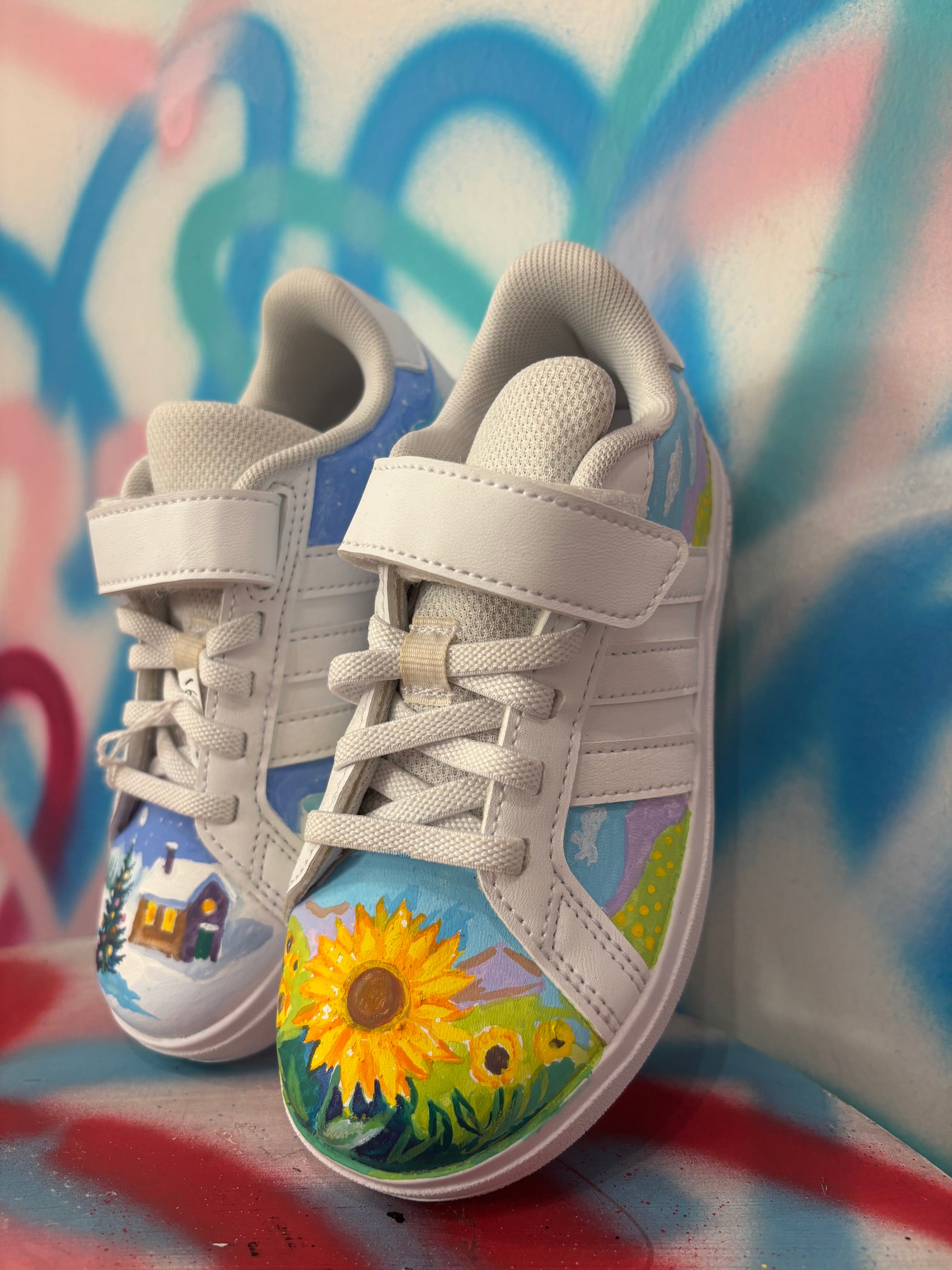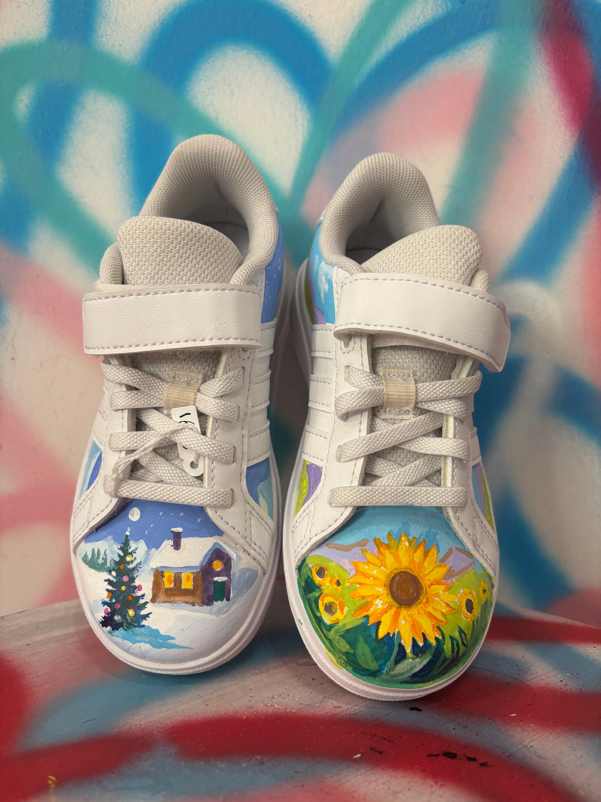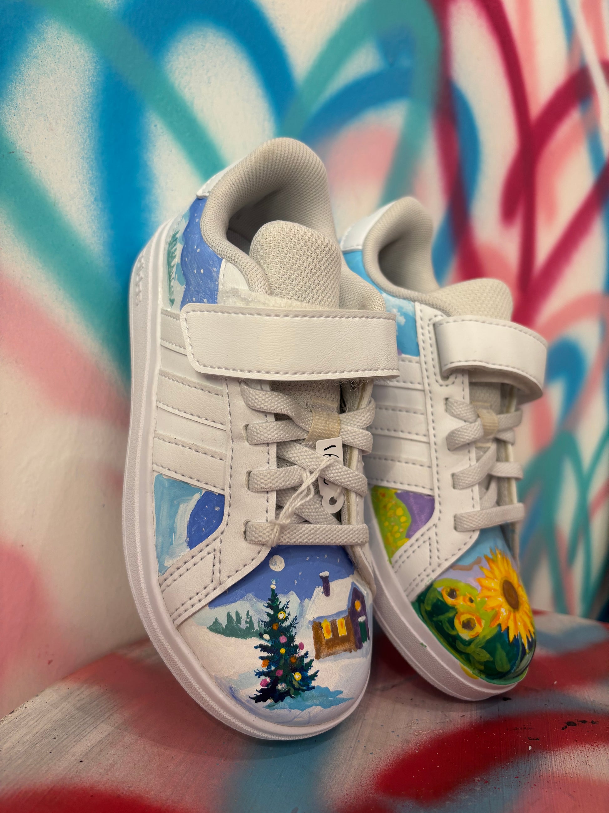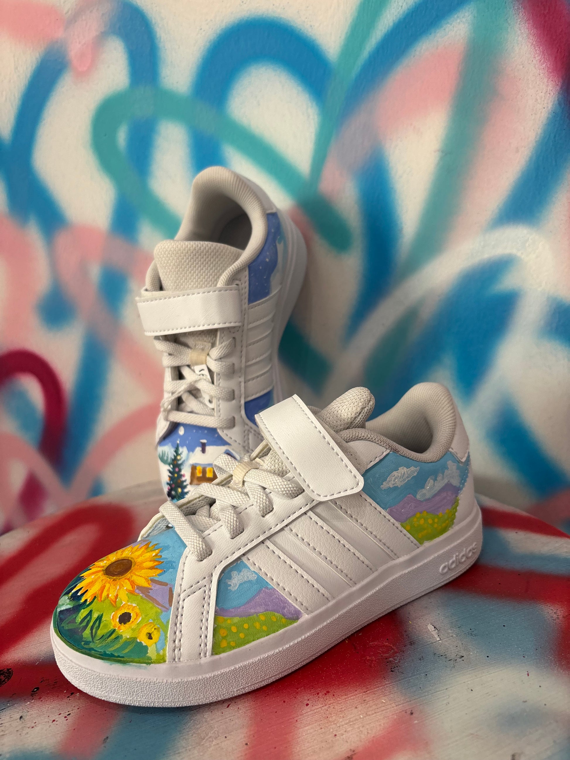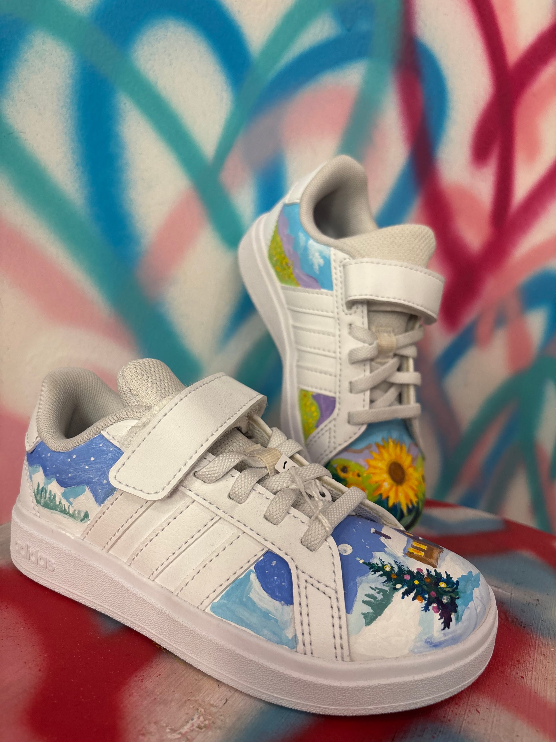 La Adidas "Stagioni" per bambini sono delle sneakers di alta qualità, personalizzate a mano con colori e disegni eleganti e adatti ai bambini per un momento speziale.