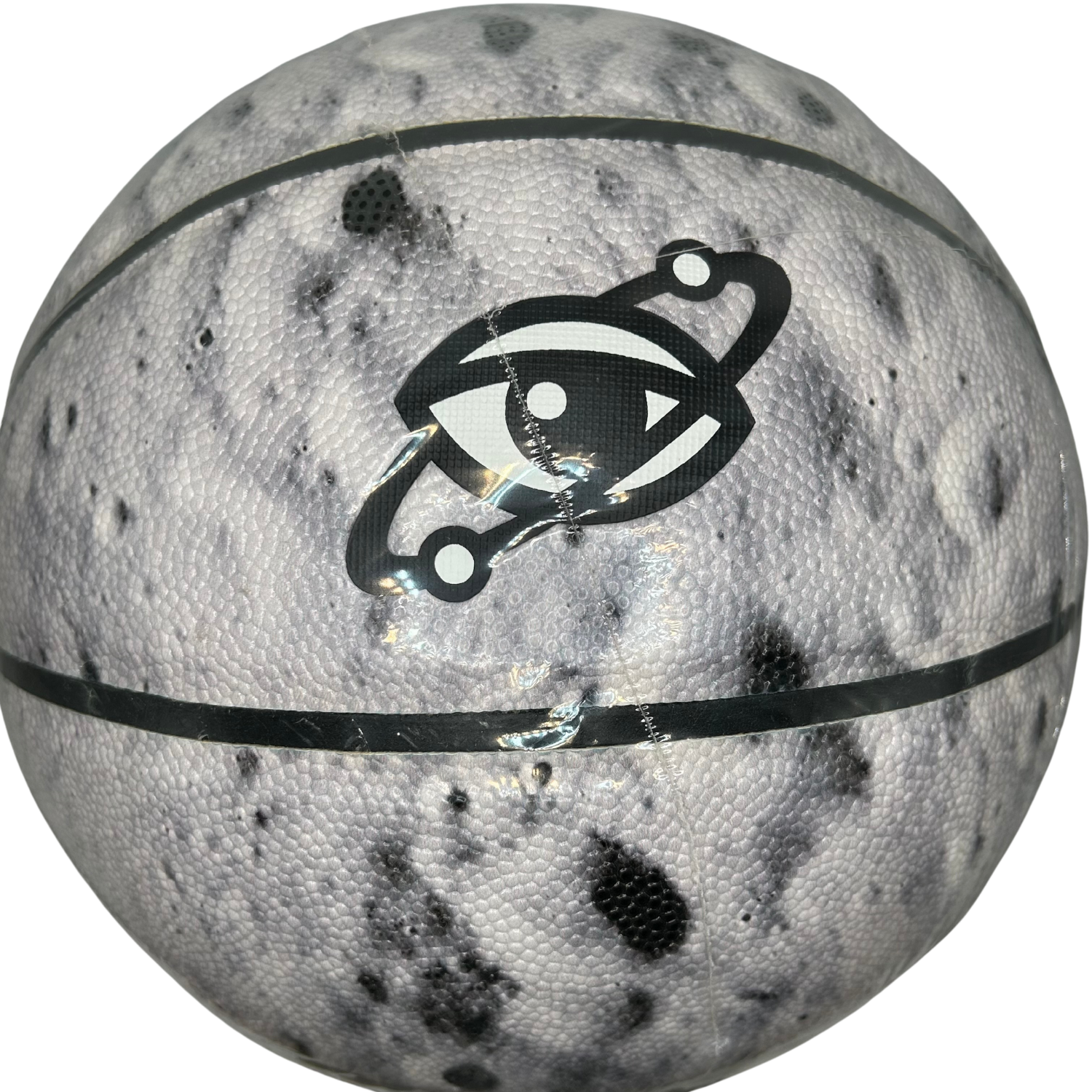 Palla da basket di ø27 cm con logo Imbue Eye in rilievo e stampa completa della superficie lunare.