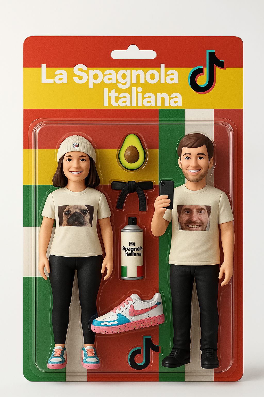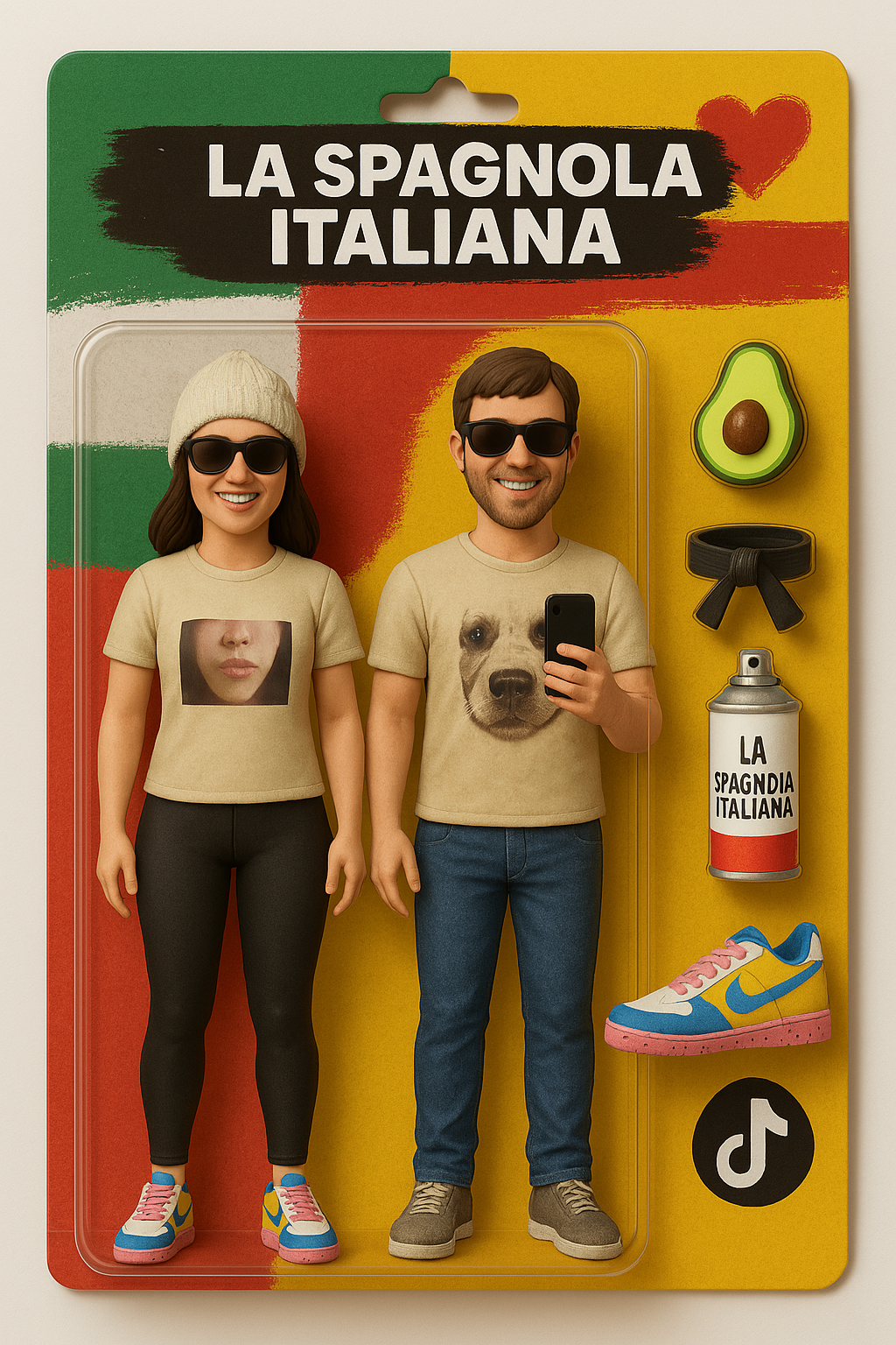 Ti ricreiamo all’interno di un packaging grafico personalizzato, completo di effetti, sfondo, accessori, nome e dettagli da vera icona pop. L’effetto è quello di una scatola da collezione vintage o moderna, come se fossi appena uscito da un negozio di action figure… ma con la tua faccia!